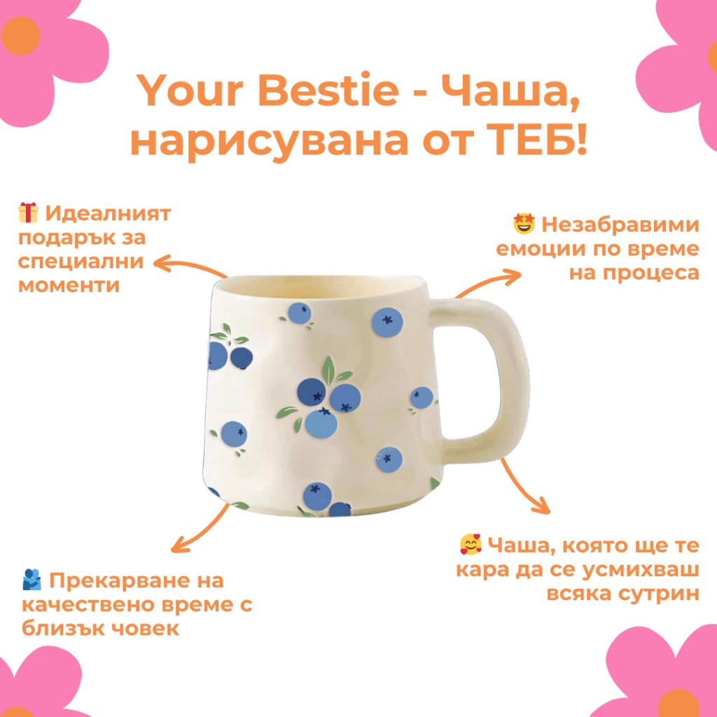 Your Bestie е повече от чаша - това е твоето малко творческо приключение! Създай своя уникален дизайн и превърни всяка глътка кафе в специален момент. ✨