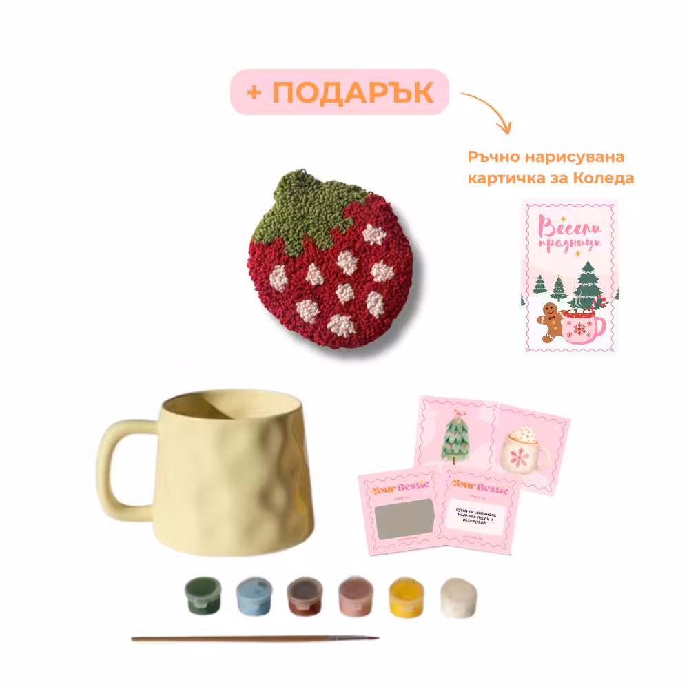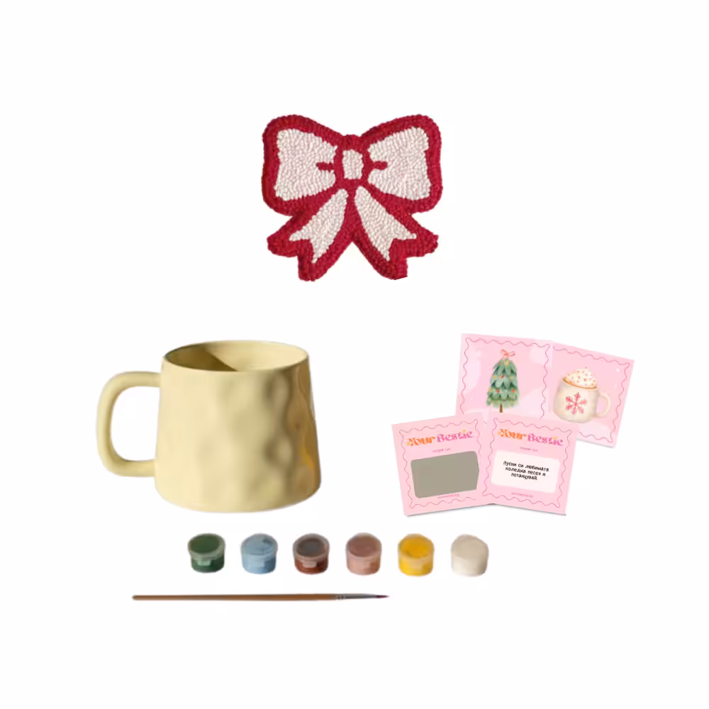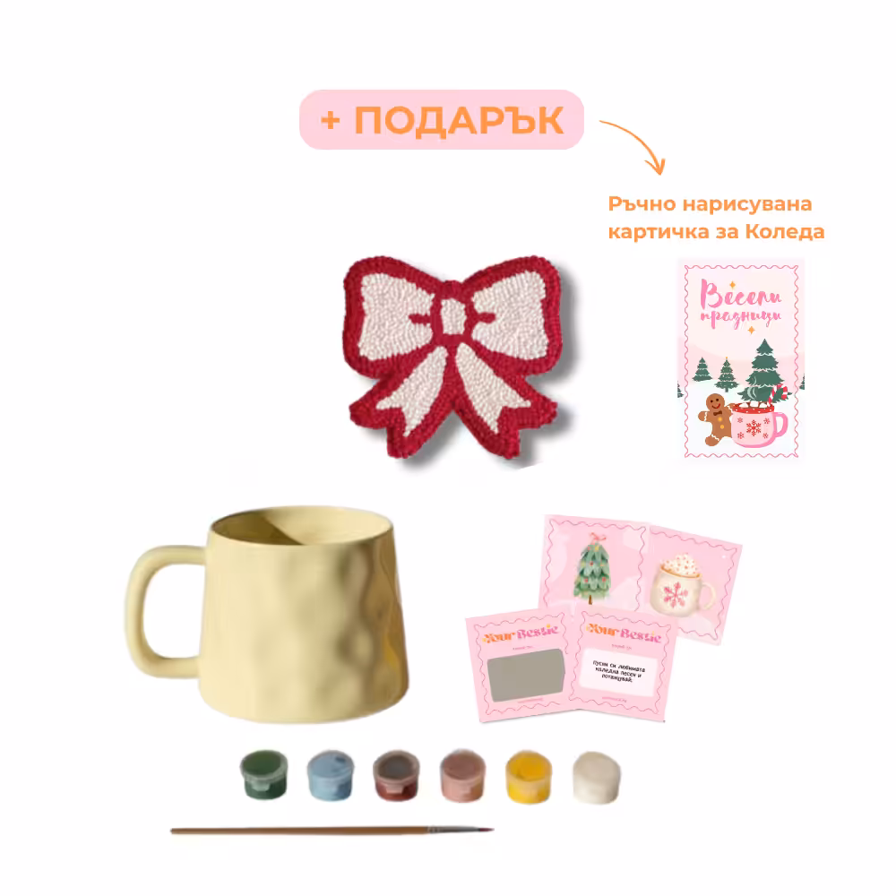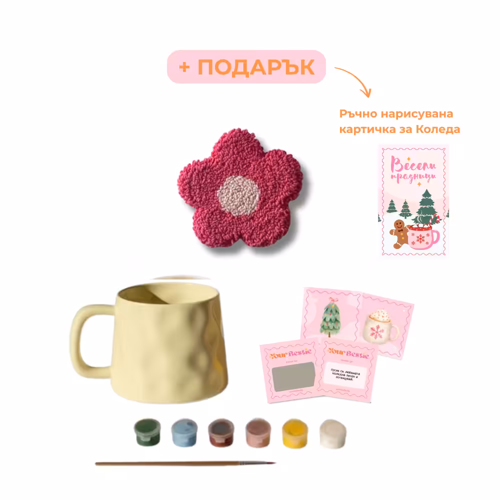 Нашата емблематична керамична чаша, която идва с комплект боички и четка, за да я превърнеш в нещо изцяло твое. Създай своя уникален дизайн – различен, красив и пълен с емоция. Твоята сутрешна напитка никога няма да е същата.
