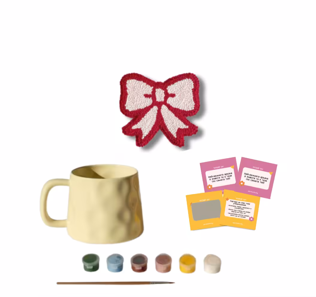 Your Bestie чаша – нашата емблематична керамична чаша, която идва с комплект боички и четка, за да я нарисуваш по свой уникален начин.